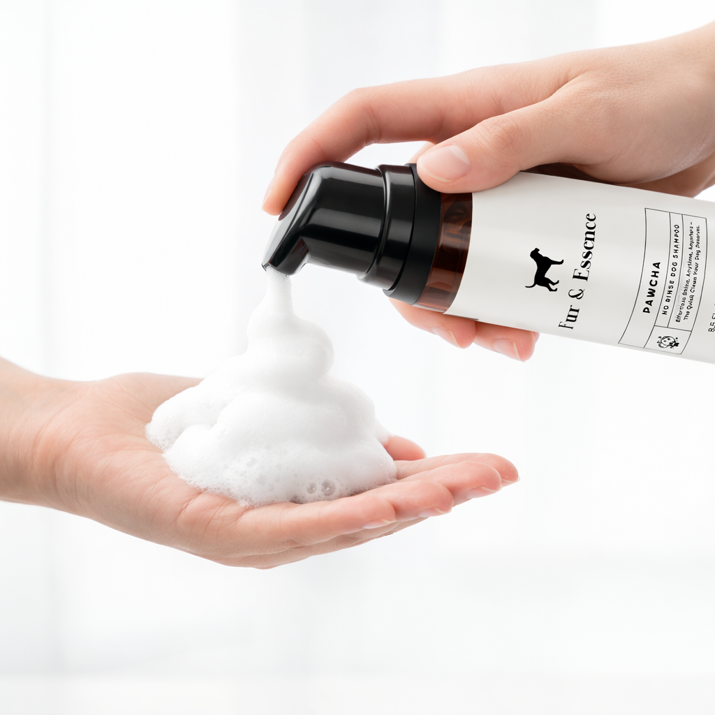 Premium no-rinse dog shampoo designed to clean, condition, and refresh — anytime, anywhere.